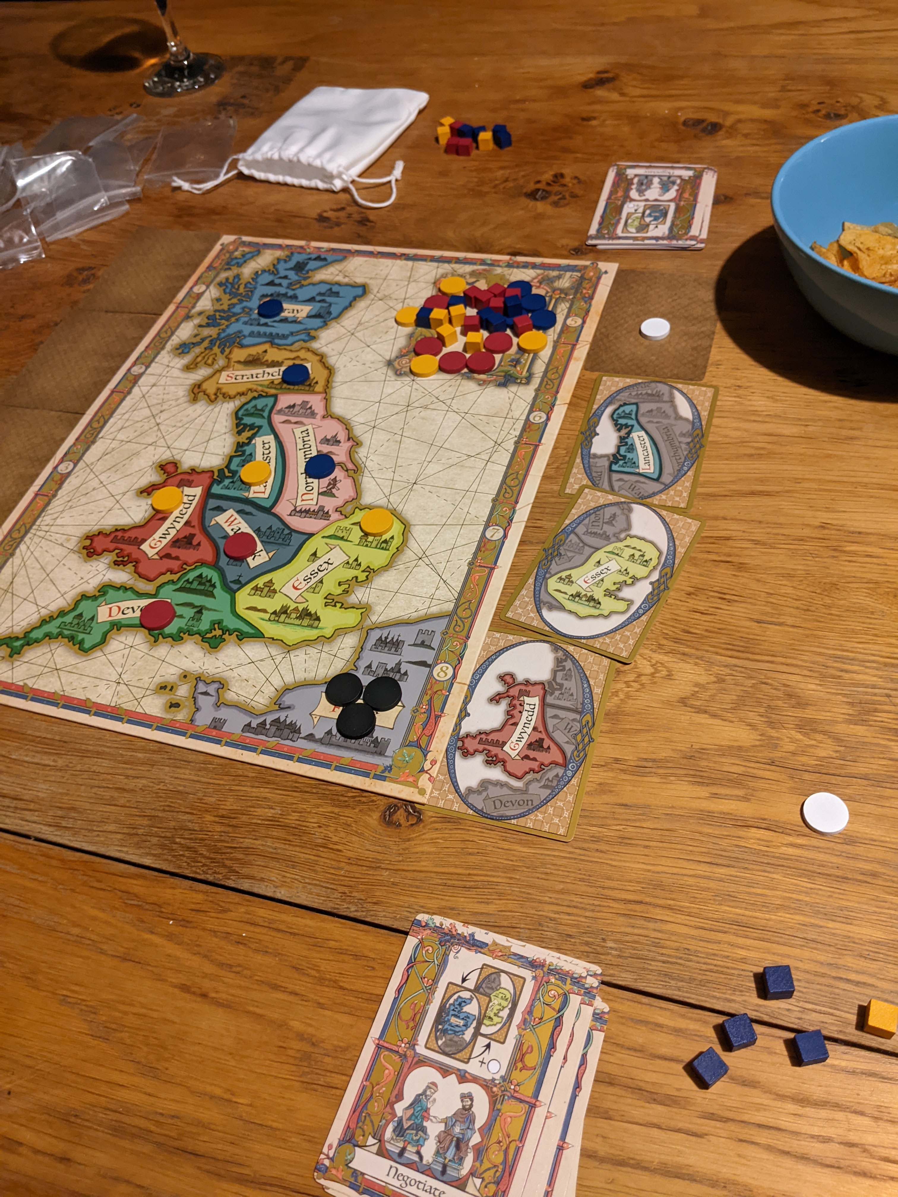Impression: An area control game where you also fight for control of the factions themselves! Slow to start but a tight and calculated ending. We played with symmetrical hands but I'd say it is probably better with the optional asymmetric cards.