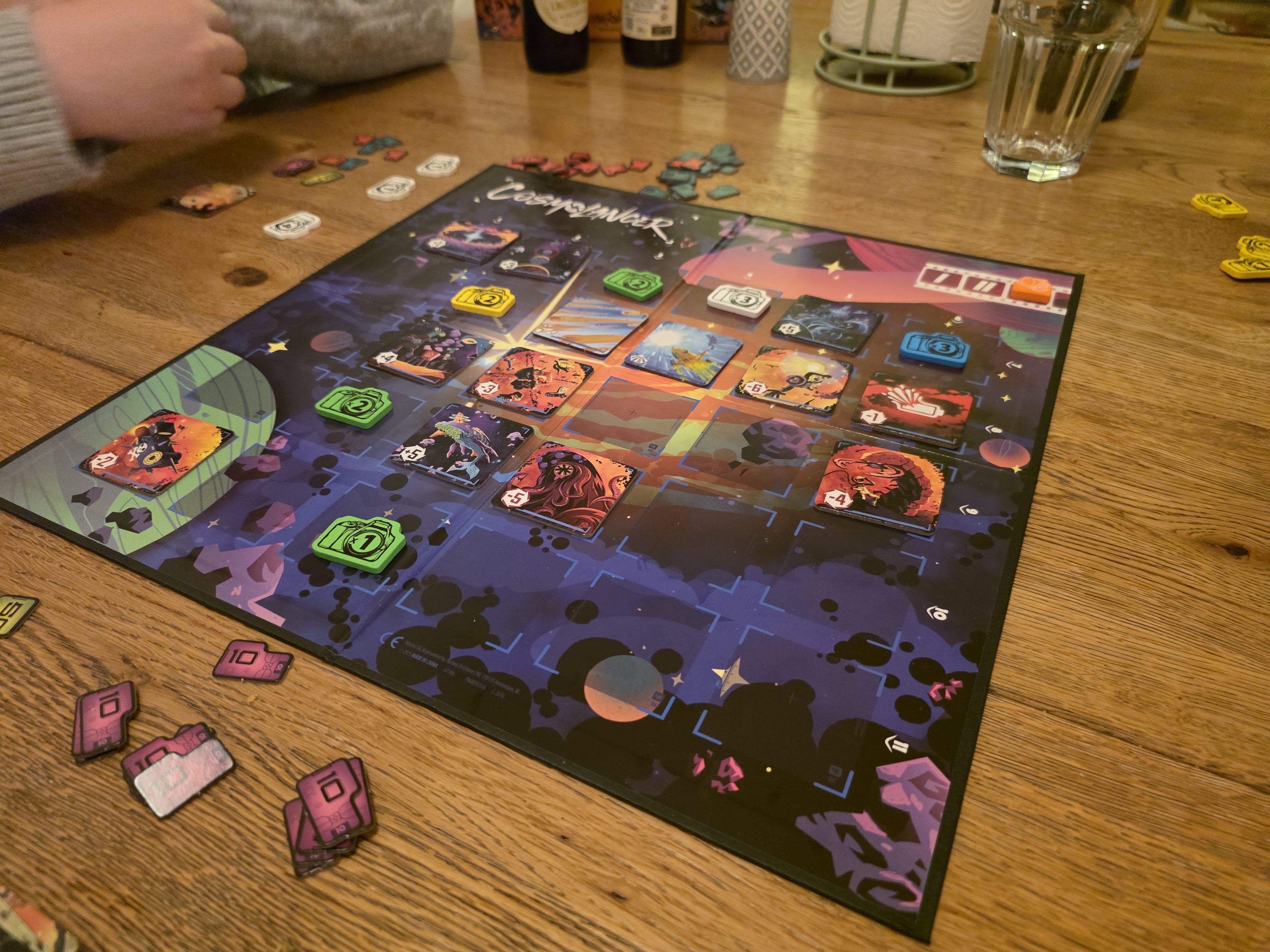Game: Cosmolancers Date: January 4, 2026 Impression: A classic Reine Knizia game, a tight abstract game with a high quality theme. You are a journalist taking pictures of events in space. You place your cameras and once the board if filled score the row and column. It has a great tension between setting a target on yourself vs disrupt others. Easy to teach short game with great player interaction. Design Thoughts: The player interaction here is really interesting, as you are adding negative scores or blocking positive scores that often affect multiple people, rather then removing opponents pieces. I wonder can other games have similarly softer but direct interaction?