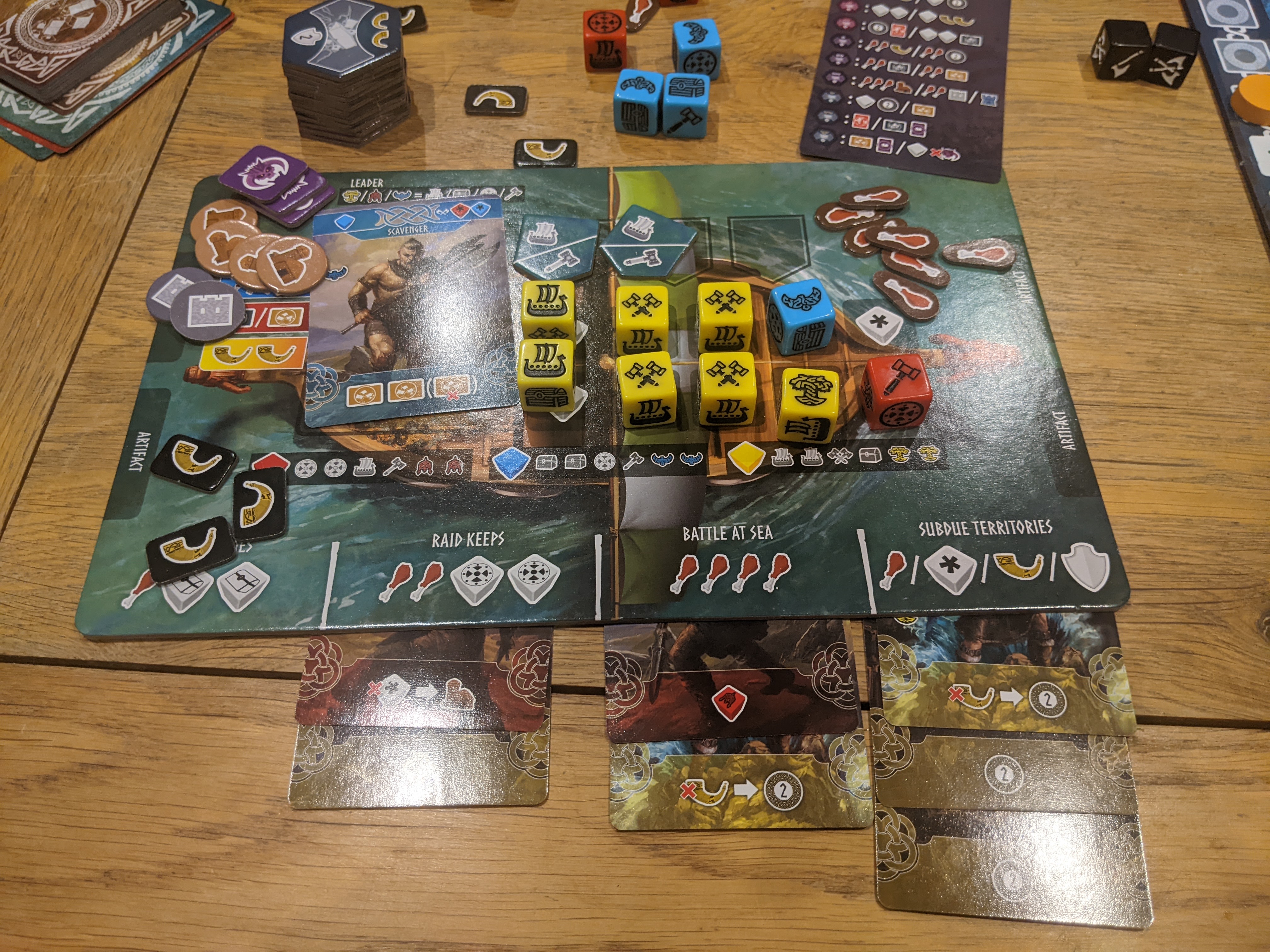 Game: Reavers of Midgard Date: December 8, 2021 Impression: Worker placement / dice rolling / points salad. Dripping in theme, enjoyable, possibly biased as I won...